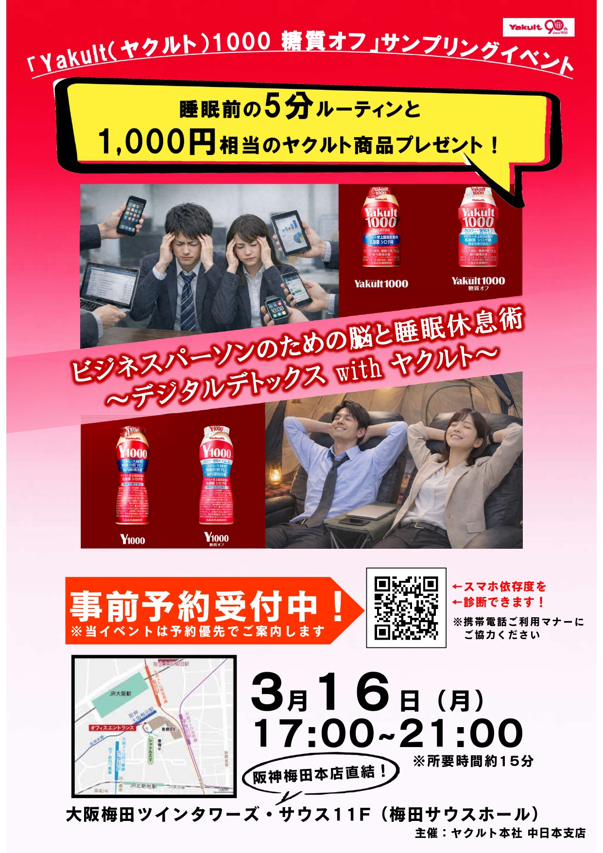 このたび、ビジネスパーソンが多く行き交う梅田駅近辺、梅田ツインタワーズ・サウスにて、ヤクルトプレゼンツの体験型イベントを開催することになりました。